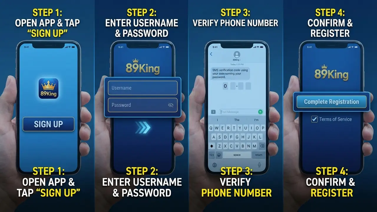 Hướng dẫn chi tiết 3 bước đăng ký 89King trên mọi thiết bị